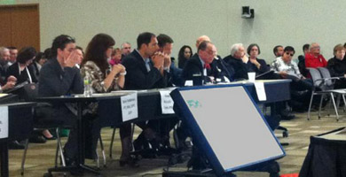 WASHINGTON, 25 février 2013 — aujourd’hui, les dirigeants de l’Association ALS, en plus de patients, soignants, médecins, chercheurs et autres personnes intéressées, ont adressé un panel de représentants de la Food and Drug Administration (FDA) qui a effectué sa première audience spécifique à la sclérose latérale amyotrophique (SLA). L’Association a demandé à la FDA de travailler en partenariat avec la communauté ALS pour aider à accélérer le processus d’élaboration et d’approbation des médicaments et d’offrir de nouveaux traitements aux patients dès que possible. Aujourd’hui, il n’y a aucun traitement efficace pour la SLA et la maladie est mortelle dans une moyenne de seulement deux à cinq ans suivant le diagnostic. SLA est une maladie neurodégénérative progressive qui affecte les cellules nerveuses dans le cerveau et la moelle épinière. La maladie prive les gens de la capacité de marcher, de parler et même de cligner les yeux. Elle les retient à l’intérieur d’un corps qu’ils ne peuvent plus contrôler et finalement les empêche de respirer comme il faut et prend leur vie. Il n’y a pas de cause connue de la maladie, bien que les vétérans militaires sont environ deux fois plus susceptibles de développer SLA que la population générale. La journée peut se résumer en une citation directe de Robert Anderson, une personne ayant la maladie, qui reçoit des soins de « Catfish » Hunter de l’ALS Association. À l’aide d’une voix générée par ordinateur sur sa tablette parce qu’il peut ne plus parler, il dit au Comité de la FDA: « SLA est rapide. Nous devons une FDA plus rapide. » L’audience a débuté tôt aujourd’hui avec les remarques de Jane H. Gilbert, président et directeur général de l’Association ALS et Lucie Bruijn, Ph.d., scientifique en chef, qui furent les premiers à prendre la parole parmi près de 60 orateurs représentant tous les segments de la communauté SLA et presque chaque grande organisation ALS en U.S.A. Dans son allocution d’ouverture, Gilbert a déclaré: « le fait que vous avez tant de gens et organisations réunis en un seul endroit à la fois en dit long sur notre volonté collective de partenariat avec la FDA et de travailler à l’unisson pour accélérer le développement et l’accès aux traitements pour la SLA. » Aussi, dans son allocution, Gilbert a touché sur une variété de questions clés dont la FDA doit tenir compte afin d’accélérer la disponibilité et l’accès aux traitements :