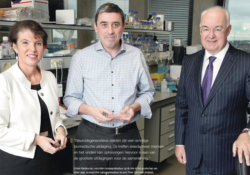 “Daar komt nog bij dat ALS-patiënten meestal nog vrij jong zijn wanneer de ziekte doorbreekt, in vergelijking met alzheimer alleszins. Ze zijn ook goed bereid om mee te werken aan onderzoek, het verzamelen van samples, regelmatige metingen enzovoort. Ook dát is een belangrijk aspect van onderzoek: je kunt wel schitterende resultaten boeken op een diermodel in het labo, maar zonder inbreng van patiënten sta je nergens. Dat probleem is minder groot bij ALS dan bij alzheimer.”